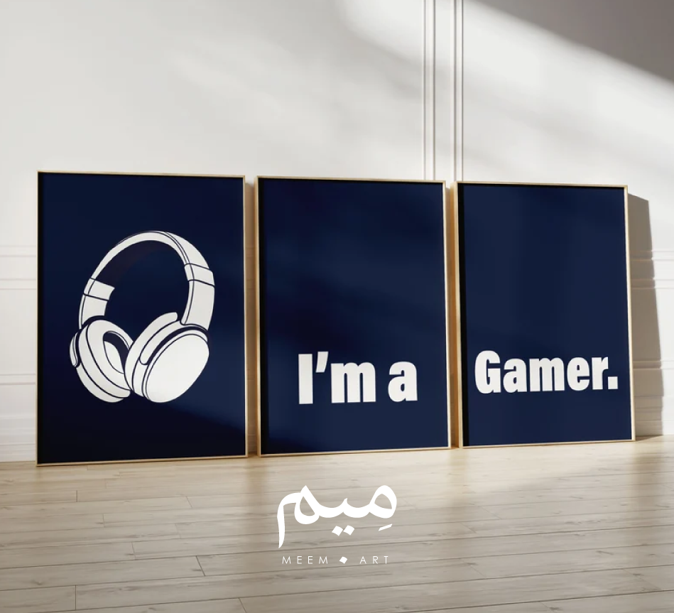 خلفية زرقاء داكنة، وفي وسطها جملة بالأبيض تقول "أنا جيمر" ورسمة لسماعة إذن بالأبيض تبرز بشكل ملفت على الخلفية الداكنة،