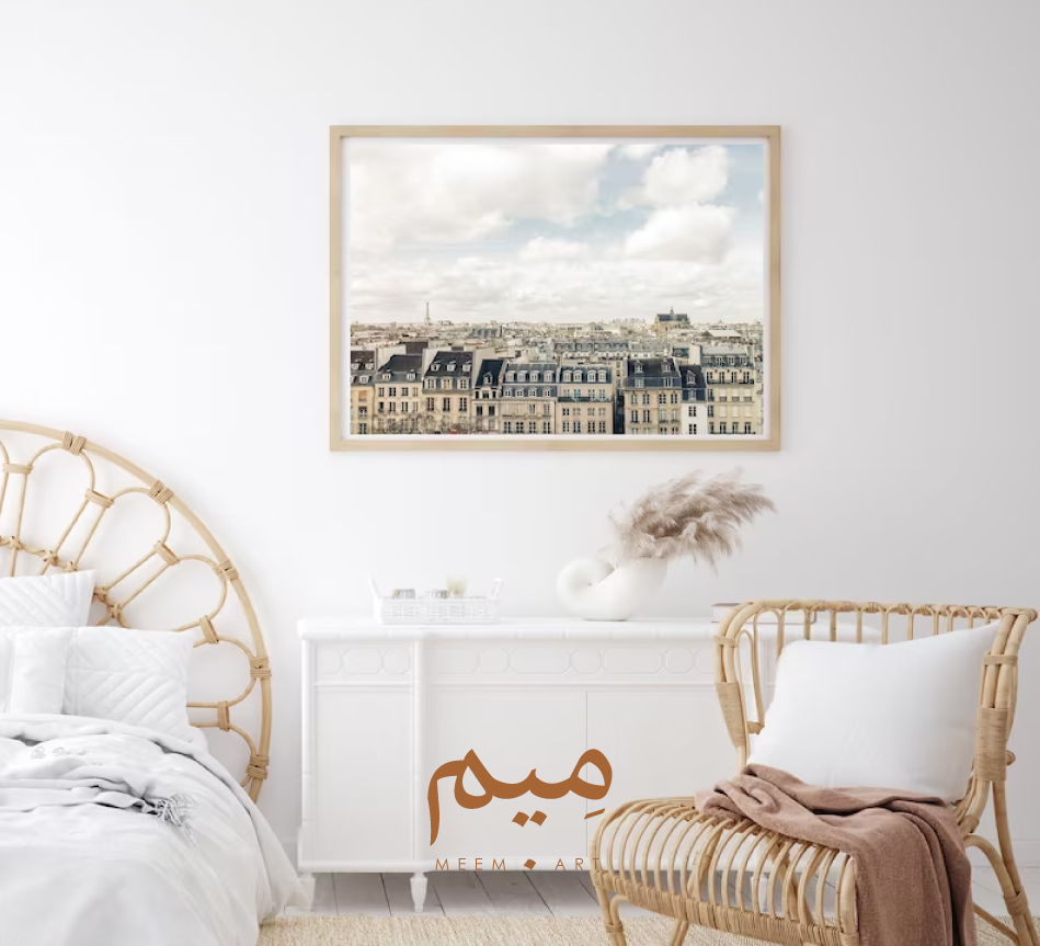 تقدم اللوحة منظرًا فريدًا لمدينة باريس من الأعلى، تظهر المنازل والمباني السكنية بأنماطها المختلفة، وتعكس اللوحة الجمال البسيط والروح الحضرية لباريس، مما يجعل اللوحة قطعة فنية تعكس جمال الحياة في العاصمة الفرنسية.