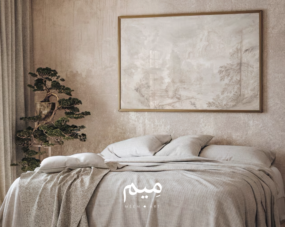 اللوحة تعتبر قطعة فنية تجريدية تمزج بين البساطة والتعقيد في آن واحد. بينما الخطوط السوداء لمشهد طبيعي لأشجار. تُضفي هذه اللوحة جاذبية خاصة على أي مكان يُعرض فيه.